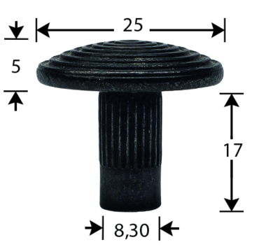 4352 | Le zingage noir confère un aspect «vieilli»» et intemporel. | Acier zingué noir | INT | A sceller | Strié | Lot de 216 clous. Pour environ 1,40 m x 0,40 m ou 1 m x 0,60 m | CLOUS PODO METACLOU STRIES ACIER Z NOIR / LOT 216 |