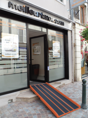 Permite instalar una rampa de acceso para Personas con Movilidad Reducida (PMR) para cruzar los umbrales, escalones o aceras de un negocio, un hotel-restaurante...