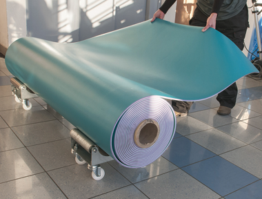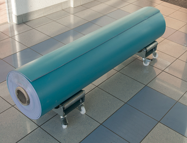 Para el desenrollado y manejo del recubrimiento de suelos. Estructura de acero a prueba de óxido. 4 ruedas de nylon de ø 60 mm., 2 con frenos. Dimensiones.: L...