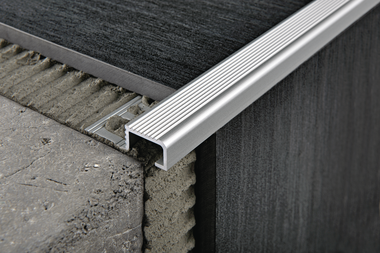 Cantoneras de peldaño antideslizantes para una escalera segura y un acabado elegante al mismo tiempo. Para sellar antes de la instalación, disponibles en varios materiales y texturas, para reducir el riesgo de deslizamiento y ocultar los cortes en el revestimiento.