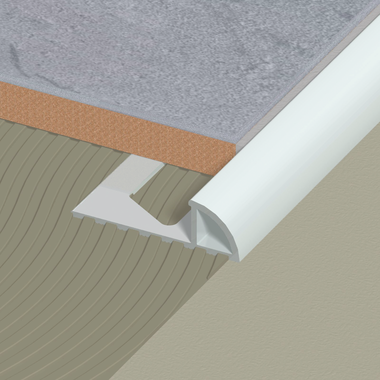 Perfiles para cerrar y proteger los ángulos externos de los revestimientos cerámicos, evitando el antiestético y frágil corte a 45°. El acabado redondeado también sirve como acabado simétrico y antigolpes contra el ángulo del revestimiento. Solo para pared o faldón de bañera. Uso en interior.