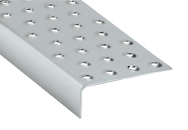 Profil en inox embouti par dessous, créant des trous au toucher rapeux, au pouvoir très antidérapant Classe antidérapante R12. A fixer avec vis inox ø 3,5 mm (n...