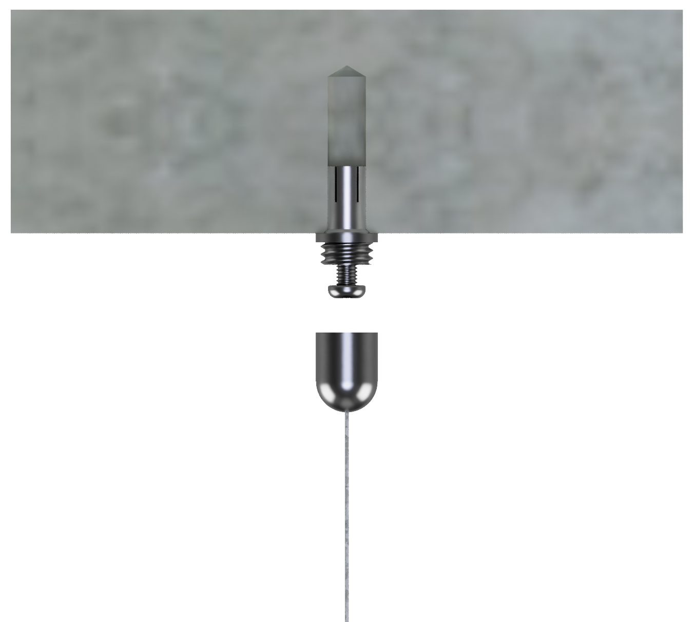 Dop voor het touwuiteinde van de ophangset met 3 touwen, om in de basis te steken die aan het plafond is bevestigd.