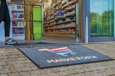 Mat met logo, speciaal ontworpen voor buiten. Het schraapt de zolen waardoor vuil en grove resten worden verwijderd (grind, aarde, modder enz.) voordat de persoon naar binnengaat. - Gerecyclede Econyl-polyamidevezel met schraapeffect - Hoogwaardige kleurstoffen voor een duurzame uitstraling van het merkimago - Stevige rubberen basis voor maximale duurzaamheid bij intensief gebruik - Afwateringsgaten en verhoogde spikes om regenwater af te voeren. - Volledig wasbaar - Maximale afmeting 130 x 200 cm