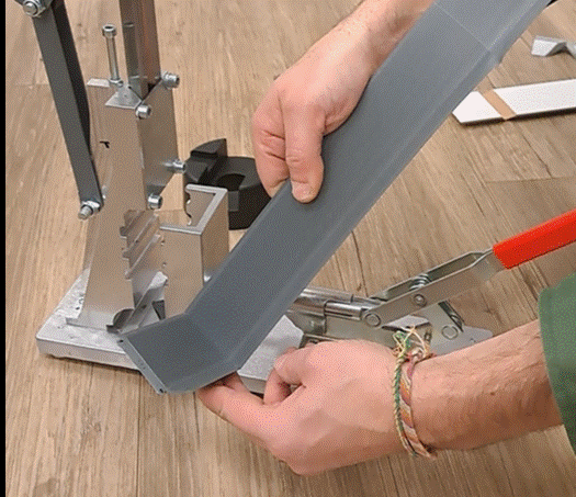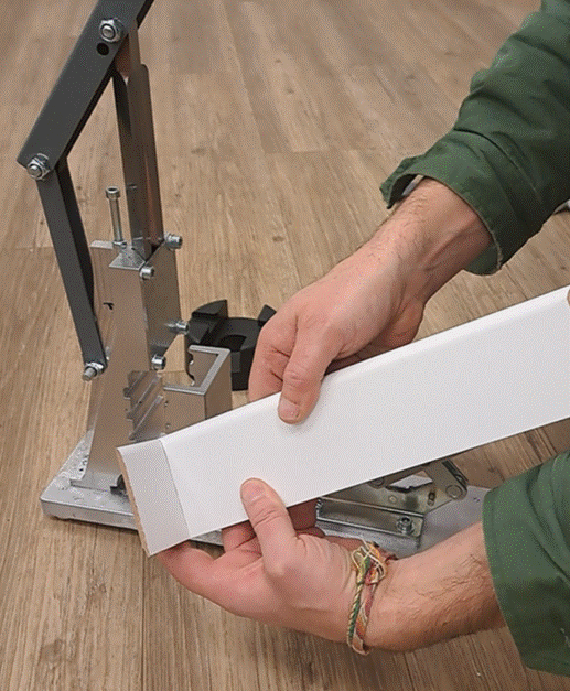 MULTI-PLINTEN snijmachine voor het gedeeltelijk versnijden van de plint door middel van groeven, waardoor plinten naar buiten of naar binnen gebogen kunnen word...