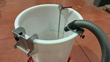 Om vrijwel stofvrij te werk te gaan bij het gieten van poedercoating in een emmer of bidon en bij het mengen met de mixer. Wordt vastgemaakt aan de rand van de...