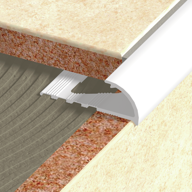 Profielen om de buitenhoeken van keramische tegels af te sluiten en te beschermen, waarbij de ontsierende en kwetsbare 45° snede wordt vermeden. De afgeronde afwerking dient ook als symmetrische en schokabsorberende afwerking tegen de hoek van de vloerbedekking. Alleen voor wand of badkuipplaat. Gebruik binnenshuis.