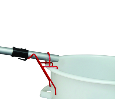 Support de tuyau pour la station de mélange. Un moyen très simple et efficace d’éliminer la poussière lors du mélange de la chape. Montez-le sur le bord du canon et fixez le tuyau à un aspirateur industriel.