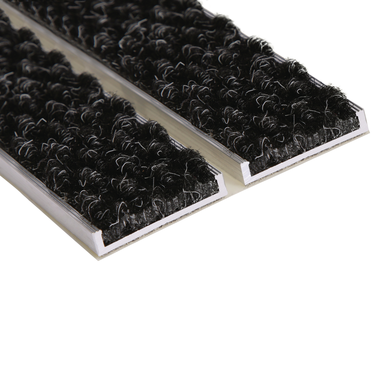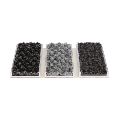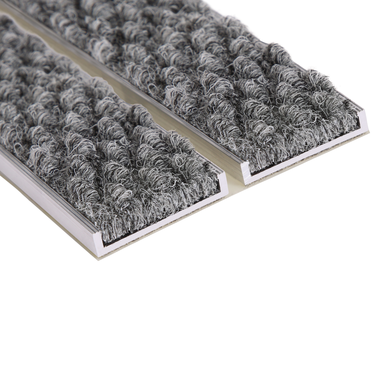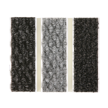 Ces profilés sont assemblés entre eux par un tout nouveau procédé d’encollage sur une natte à structure fermée en PET, ce qui confère au tapis une grande stabilité et une grande résistance au trafic, piétons, chariot de supermarché …